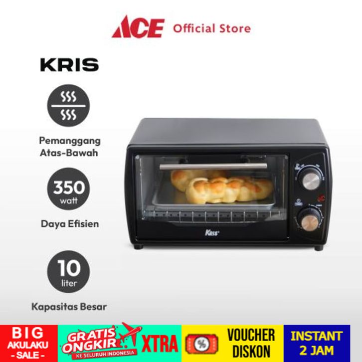 SERBA MANTAP ID Ace Kris 10 ltr Oven Toaster 350 Watt - Hitam Penghangat Makanan Panggangan