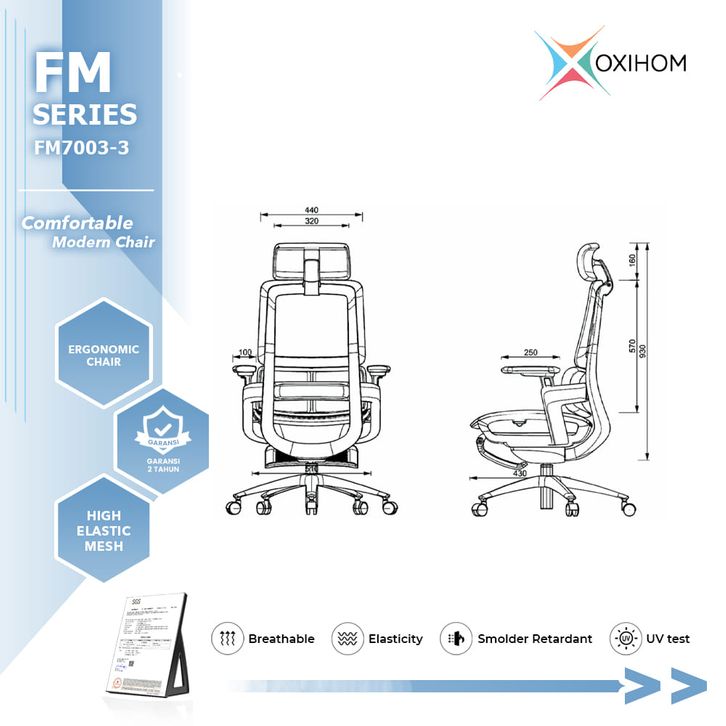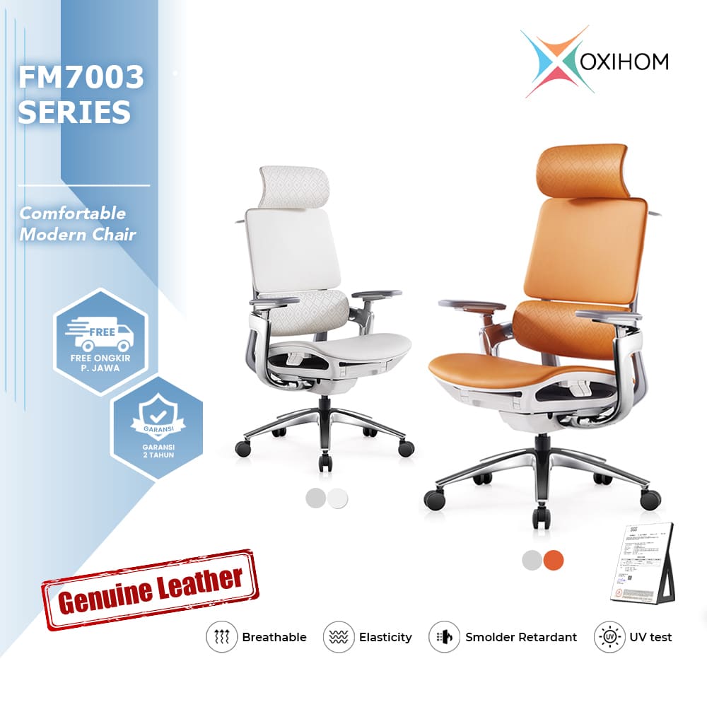 Oxihom FM7003 Kursi Mesh dan Kulit Asli Kursi Gaming Kursi Kantor Kursi Ergonomis dan Foot Rest