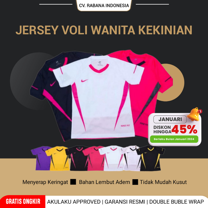 Jersey Voly Wanita Dewasa Baju Olahraga Perempuan Kaos Voli Futsal Gym Fitnes Fashion Sporty Ukuran M L XL