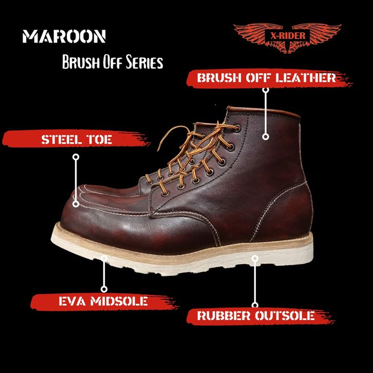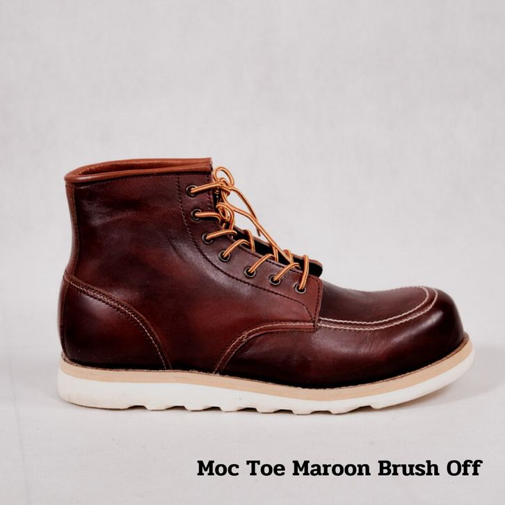 Terlaris Sepatu safety moc toe kulit asli original Maroon brush off series