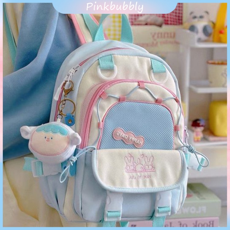 Pinkbubbly.【Ready】Tas Bahu Macaron Jepang Korea Import Fashion Tas Sekolah Lucu Siswa Kuliah Tas Ransel Laptop Berkapasi