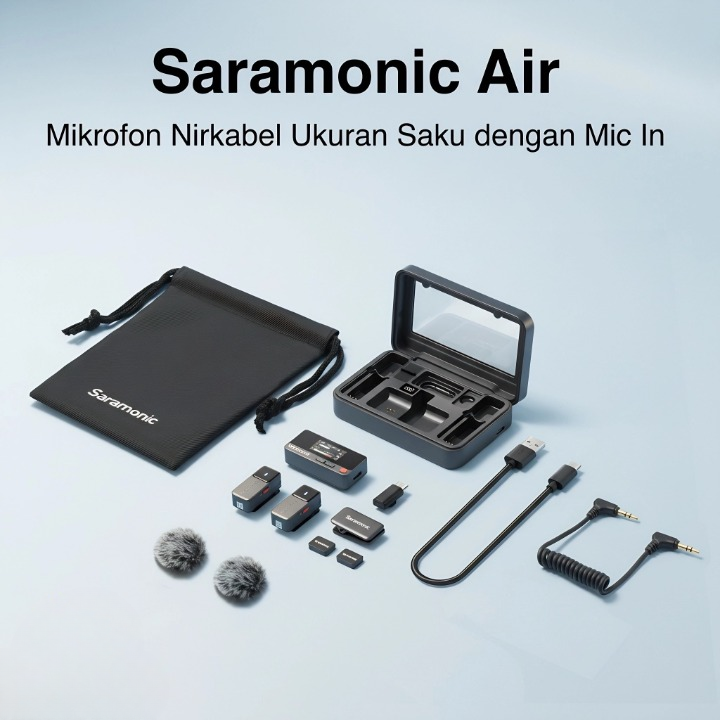 Microphone SARANOMIC Air PROX Q10 Q20 Clip On Wireless Mic Kamera dan Handphone Vlog Live Noise Canceling