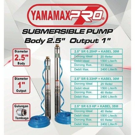 Pompa Satelit 2,5 SR 0.5 Hp +kabel 35mter Yamamax PRO Pompa Air Celup Satelit/Sumbmesible Pump/Pompa Sibel