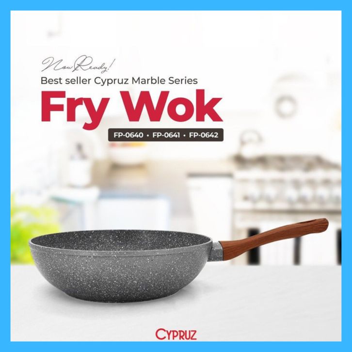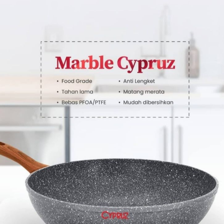 Cypruz fry wok marble wajan penggorengan teflon anti lengket diameter 20 - 28 cm