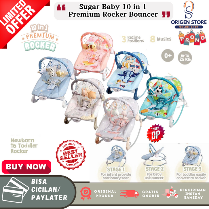 GRATIS ONGKIR-Sugar Baby 10 in 1 Premium Rocker Bouncer
