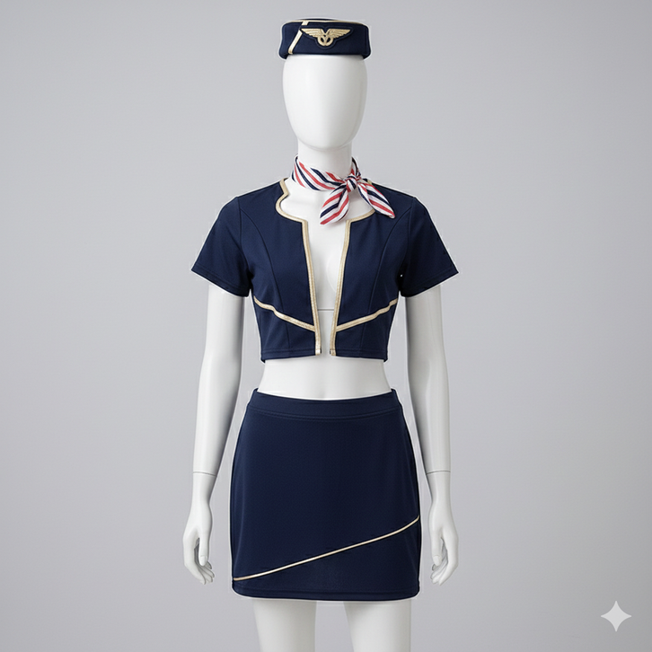 Lingerie Sexy Hot Binal Cosplay Pramugari Set Baju Rok Topi Model Cosplay Stewardess Sexy Menggoda Lingerie Cosplay