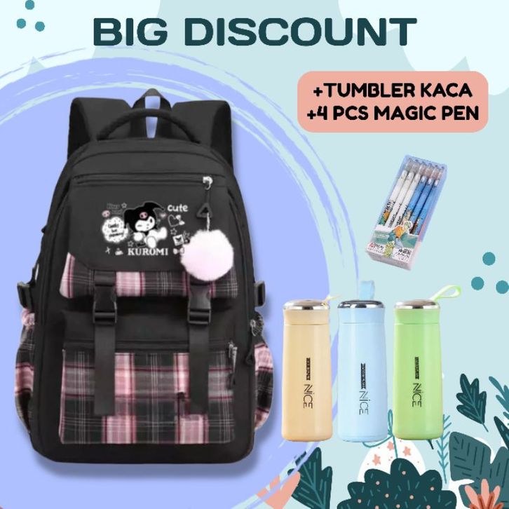 TAS SEKOLAH ANAK PEREMPUAN Tas Ransel Anak Sekolah Karakter Kuromi SD SMP SMA Murah Berbonus Banyak TAS SEKOLAH ANAK