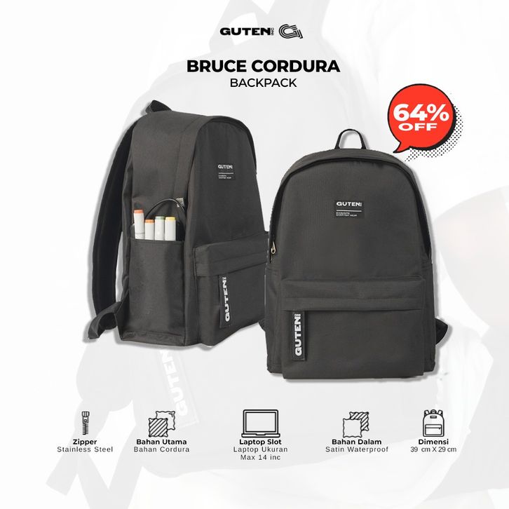 Tas Ransel Hitam Polos Pria-Wanita dan Anak Sekolah - Bruce Cordura Backpack Best Seller