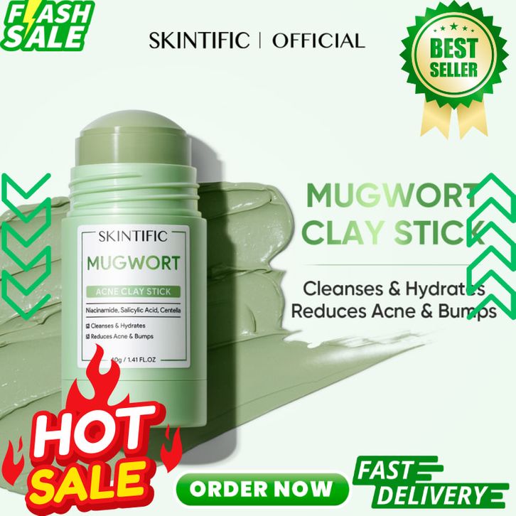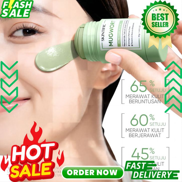 Ready Stock SKINTIFIC Mugwort Acne Clay Stick 40g Clay Mask Mud Mask Mugwort Mask Masker Jerawat Masker Muka