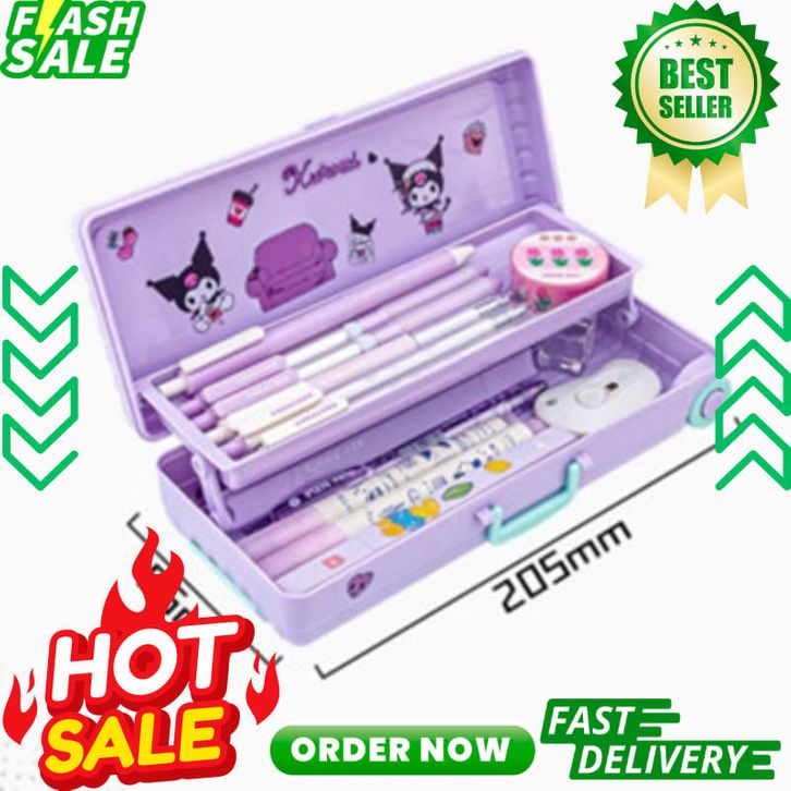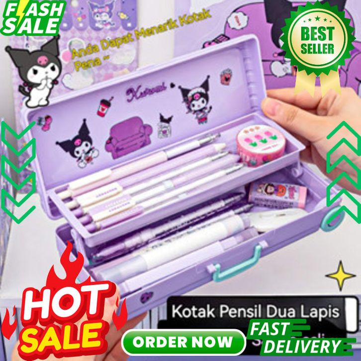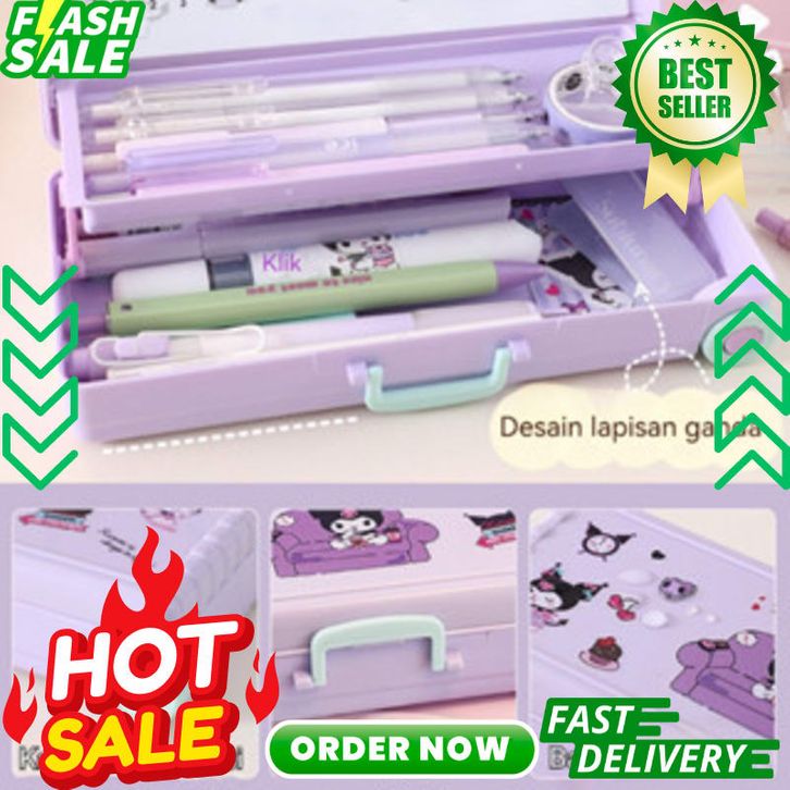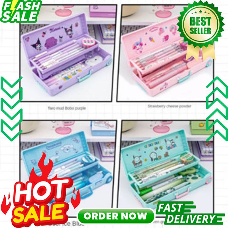 Sanrio Seri Anime Kartun Pensil Kasus Troli Kotak Alat Tulis Large Capacity Kotak Pensil School Supplies Tempat Bag
