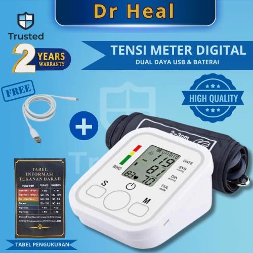 Tensimeter Digital Lengan Alat Cek Tensi Darah Otomatis Akurat Blood Pressure Monitor Elektrik Lcd Untuk Rumah Lansia