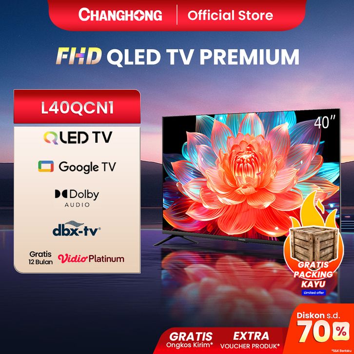 Changhong QLED TV 40 inch FHD Dolby Audio Google Play Netflix Google Assistant Smart TV Digital TV Free Vidio (L40QCN1)