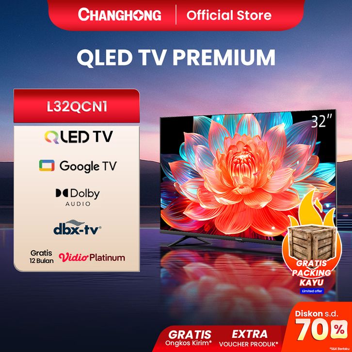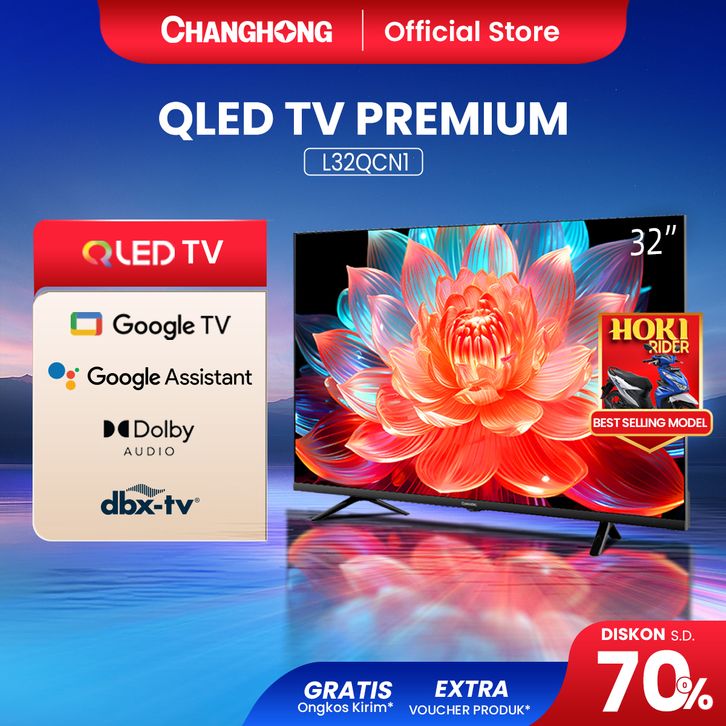 Changhong QLED TV 32 inch HD Dolby Audio Google Play Netflix Google Assistant Smart TV Digital TV Free Vidio(L32QCN1)