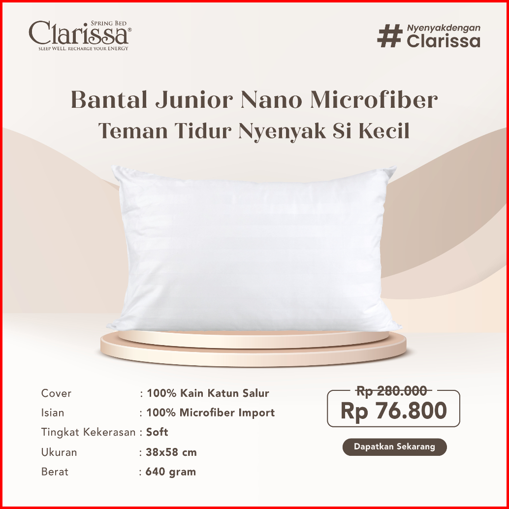 Bantal Junior Anak Nano Microfiber Bulu Angsa Sintetis Uk. 38x58 Cm - Clarissa