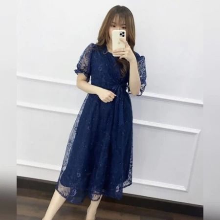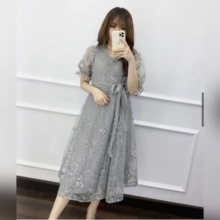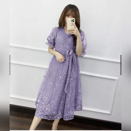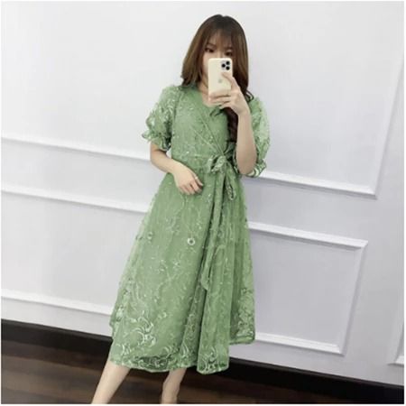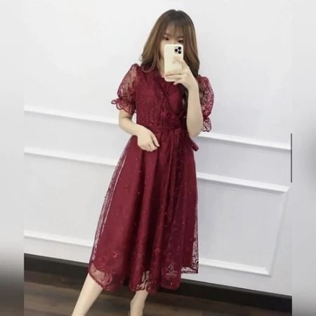 Midi Dress Natal Livina Tile Brokat Mutiara Dress Pesta Kondangan Wanita Cantik Dress Natal Terbaru 2025