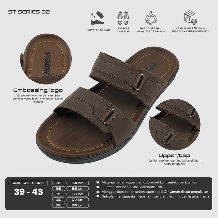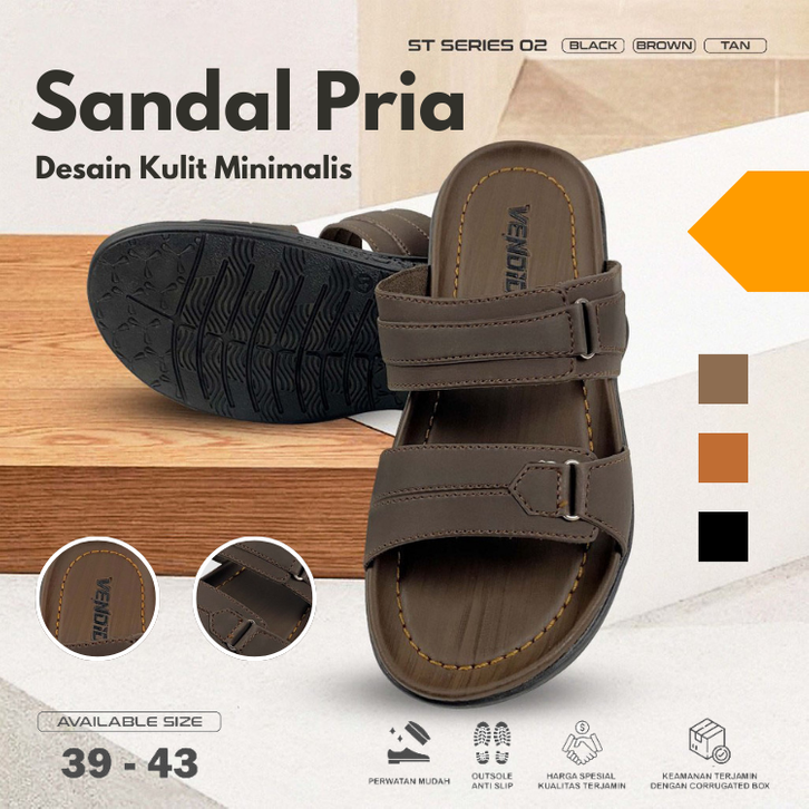 ST 02 - Sandal Pria Kulit, Desain minimalis, Kenyamanan Unggul
