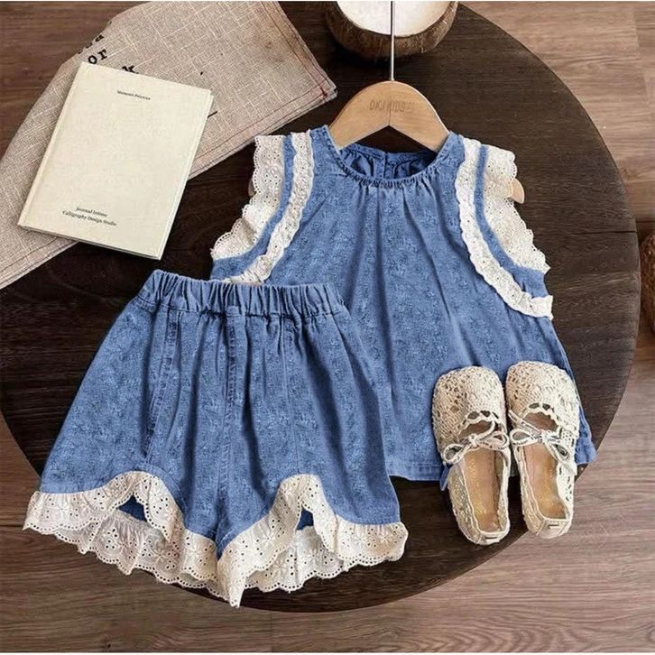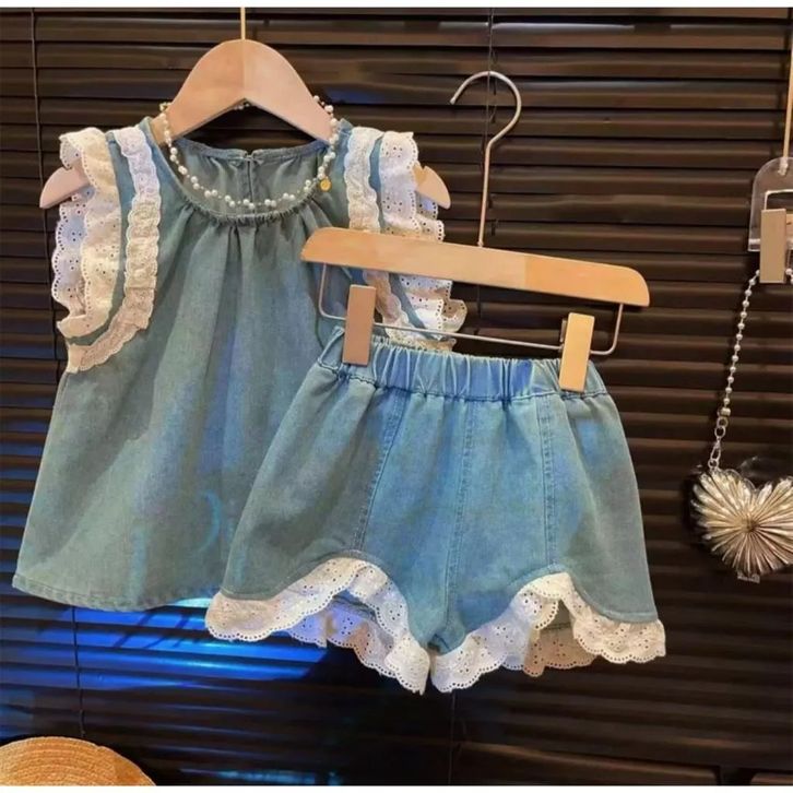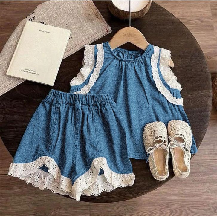 Setelan Jeans Denim Anak Perempuan 1-5 Tahun Baju Set Anak Cewek Fashion Anak Perempuan Kekinian