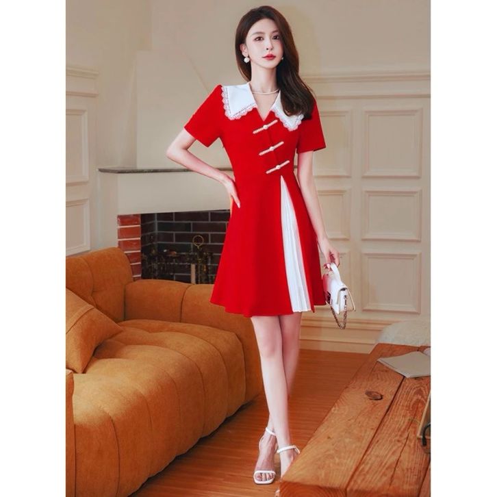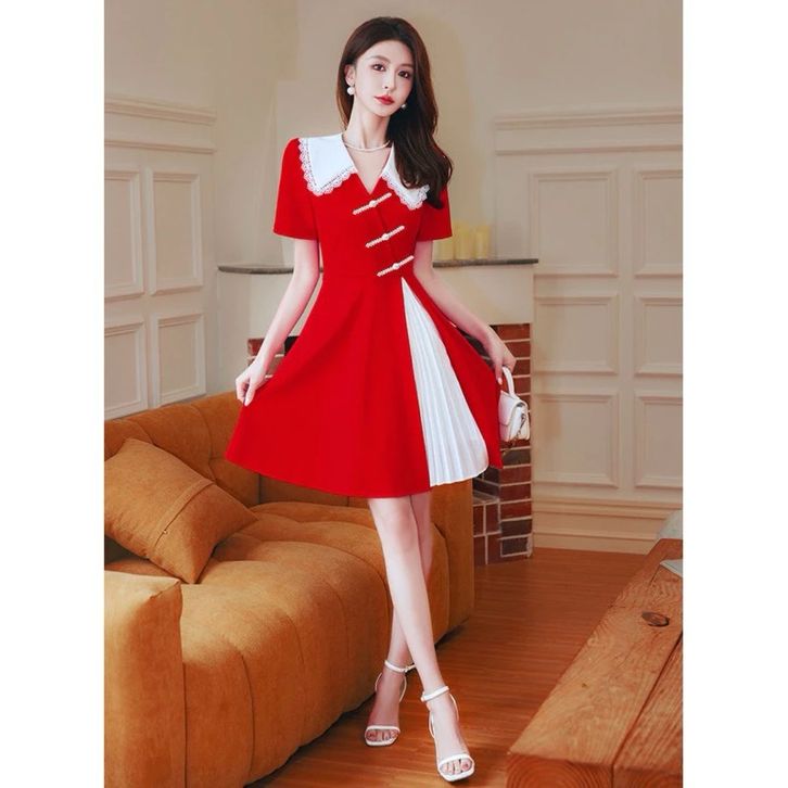 Mini Dress Plisket Model Cheongsam Dress Natal Wanita 2025 Dress Baju Dress Wanita Terbaru Korea
