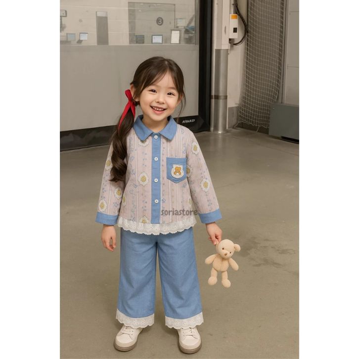Setelan Anak Perempuan Motif Beruang Gemas Set Baju Anak Perempuan 1-12 Tahun Bahan Adem Fashion Anak Cewek