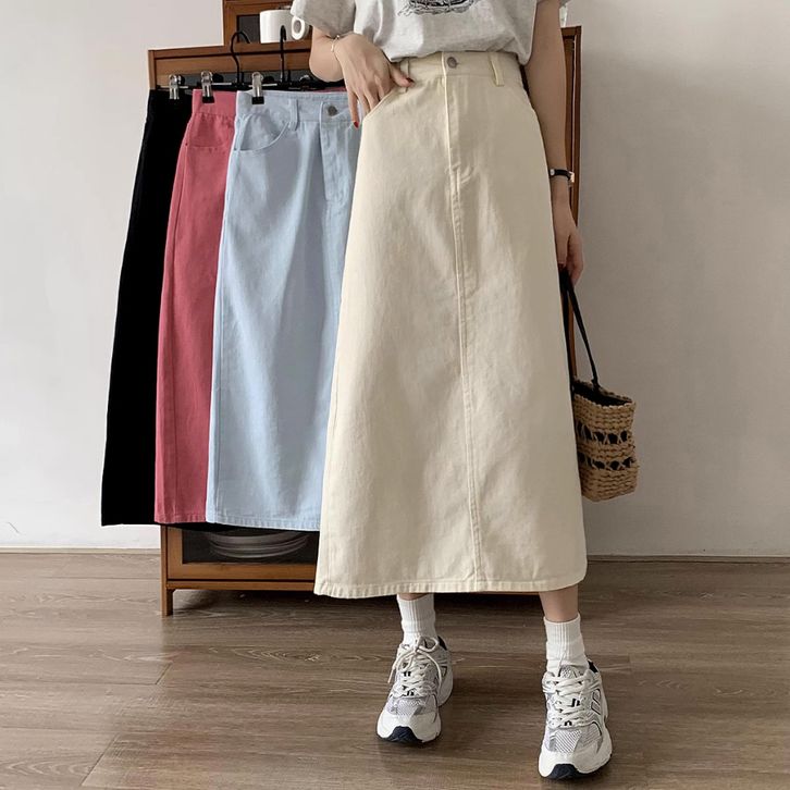 Rok Jeans Wanita Dewasa Rock Denim Perempuan Warna Hitam Biru Muda Korean Style Berkualitas Tinggi Size S M L XL