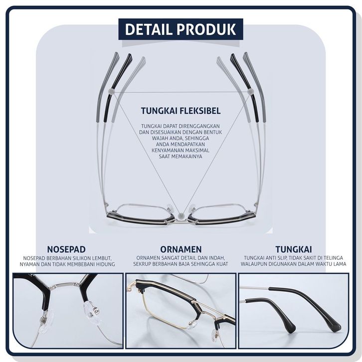 Kacamata Pria Wanita Colore.in Anti Radiasi Lensa Minus Photocromic Anti Blueray Terbaru Fashion Metal+PC