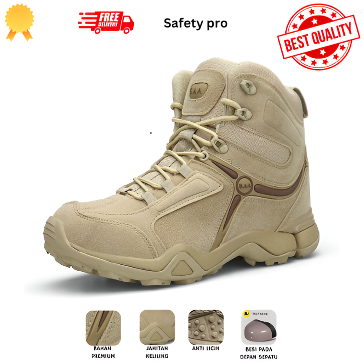 Sepatu Safety Pria Boots Gunung 5AA Cordura 6inc Outdor Turing Hiking Bikers Ujung Besi Terbaru