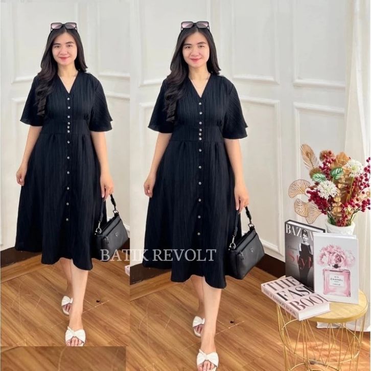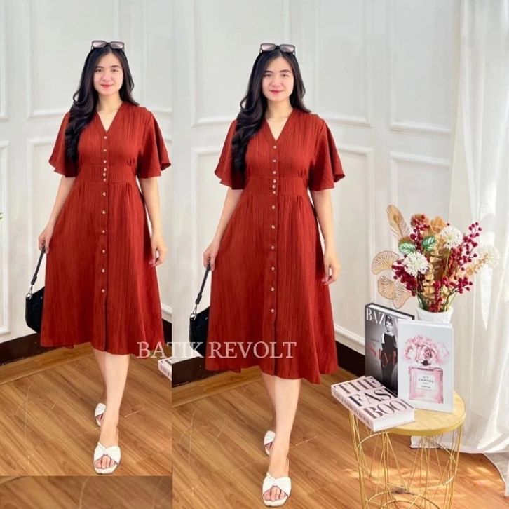 Nina Dress Lady Crush Midi Busui Friendly Premium Korean Style Casual Dress Natal Mewah Elegan Dress Kekinian 2025