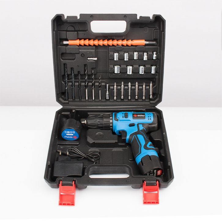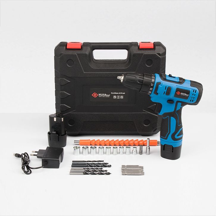 MESIN BOR TANGAN LISTRIK CORDLESS DRILL MESIN BOR ELEKTRIK DRILL 10MM SET REVERSIBLE MESIN BOR TANGAN LISTRIK HUJIA 12