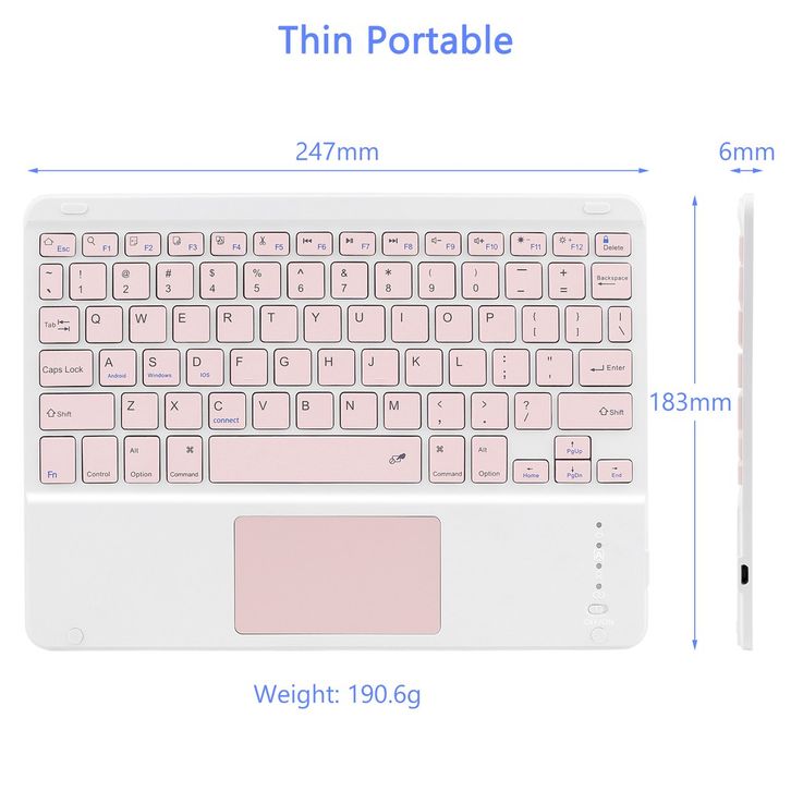 Goojodoq 10 inch Wireless Bluetooth Keyboard Touch keyboard Lightweight Portable