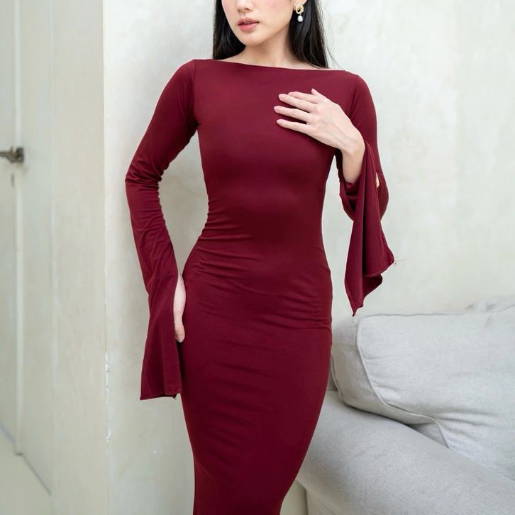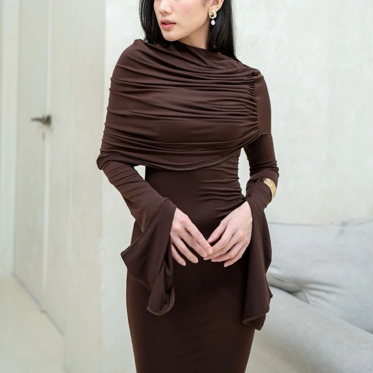 FAYANNA BARSYA RUCH DRESS KNIT WANITA KEKINIAN DRESS KONDANGAN WANITA BAJU BRIDESMAID WANITA MEWAH ELEGAN
