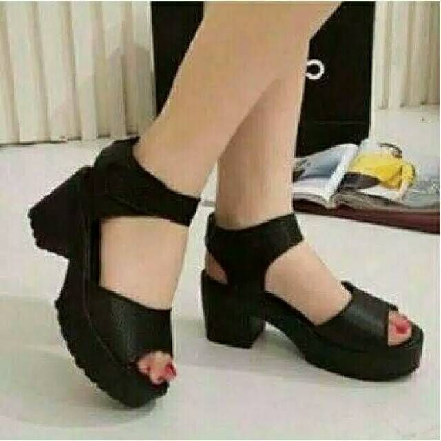 Sendal Wedges Flat Wanita�≋ Ds Wedges Docmart Hitam