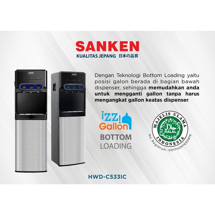 Sanken Dispenser Galon Bawah HWD-C533IC Dispenser Bottom Loading dispenser panas dingin es