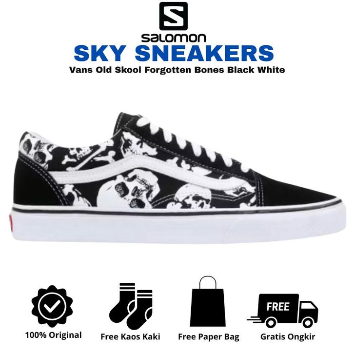 [Mall] SEPATU VANS ORIGINAL SNEAKER PRIA WANITA VANS OLD SKOOL FORGOTTEN BONES BLACK WHITE KASUAL AUTHENTIC