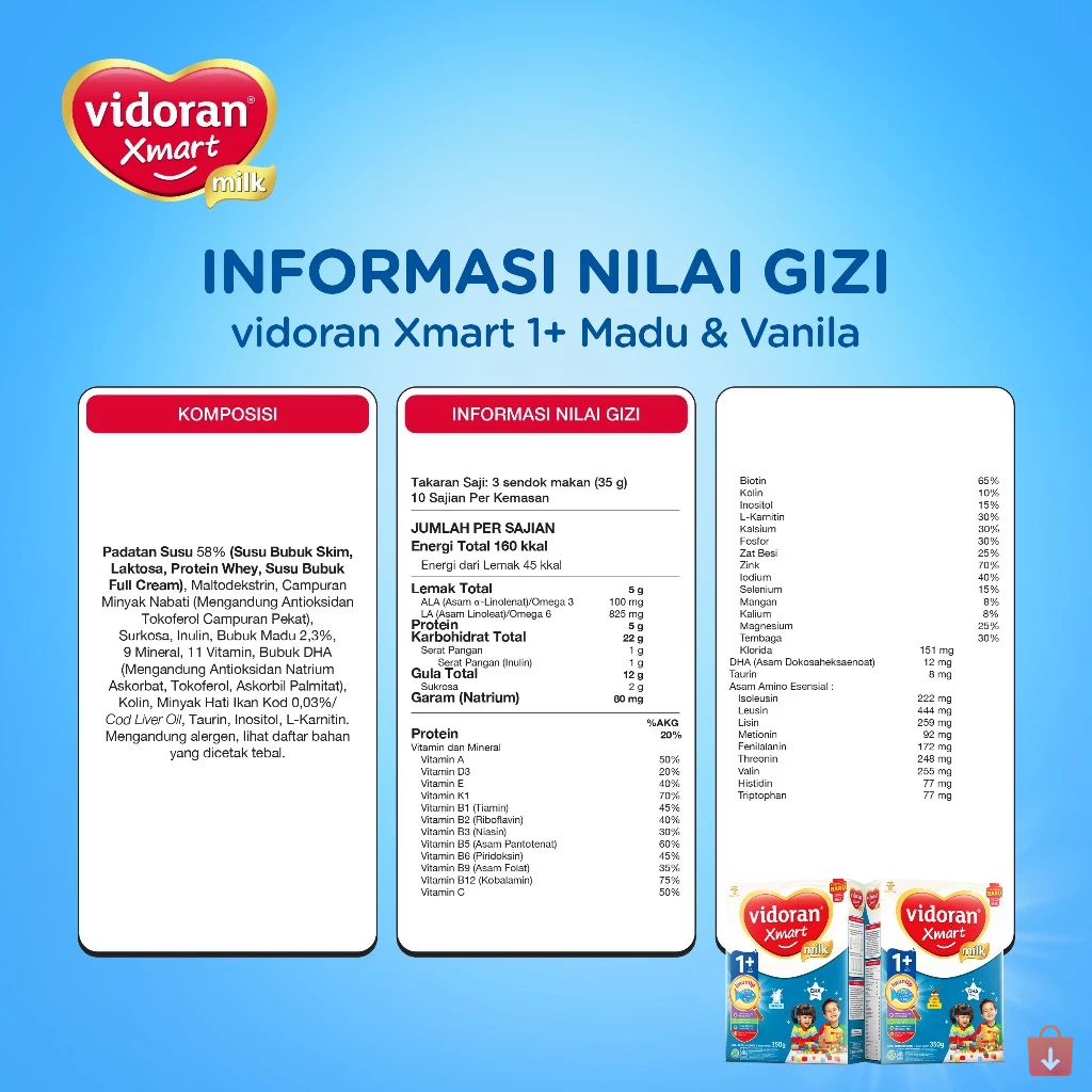 Vidoran Xmart 1+/3+ 700gr-925gr Susu Formula Pertumbuhan Anak