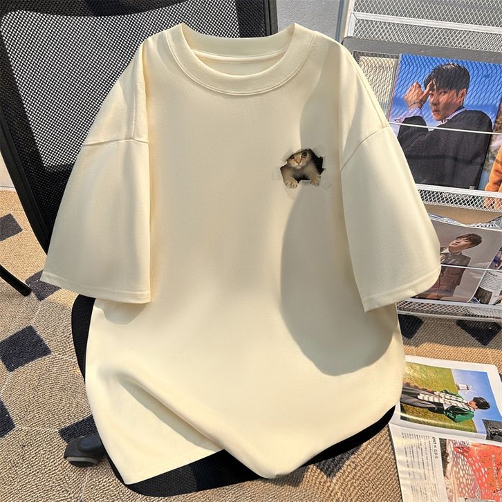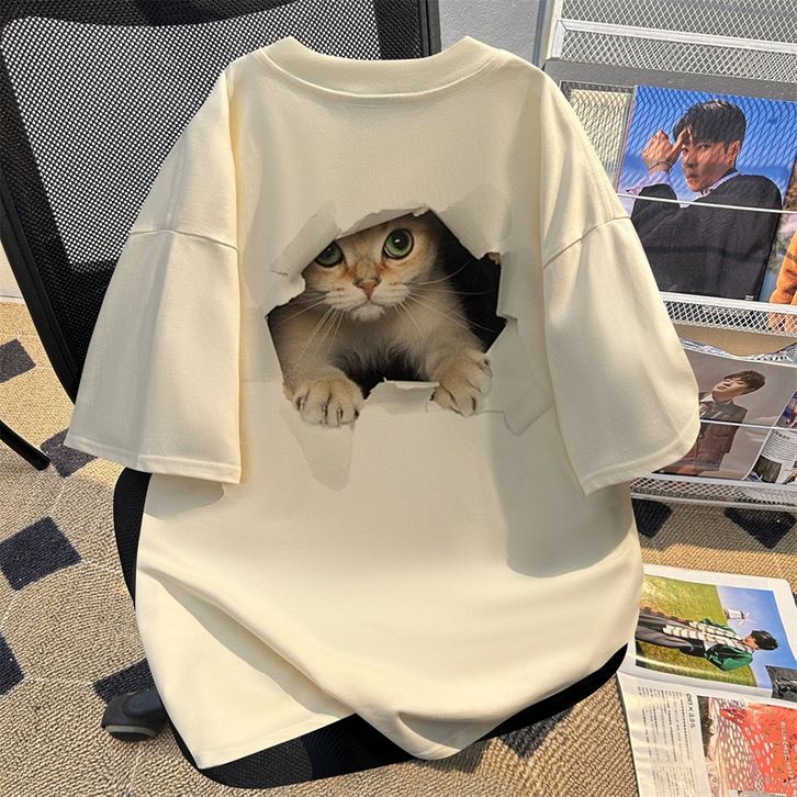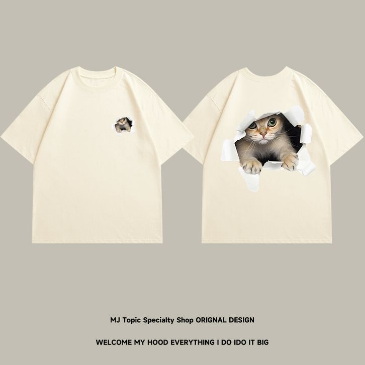 Kaos Pria Dewasa Lengan Pendek Cetak Huruf Kucing Asli Baru Casual Pria T Shirt Distro Premium Aprikot Oversize Stylish