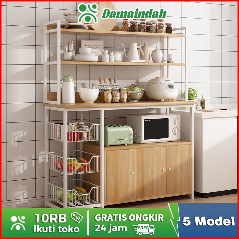 Damaindah Rak Dapur Serbaguna Rak Bumbu Kayu Lemari Dapur Rak Oven Rak Microwave Minimalis Moder Murah