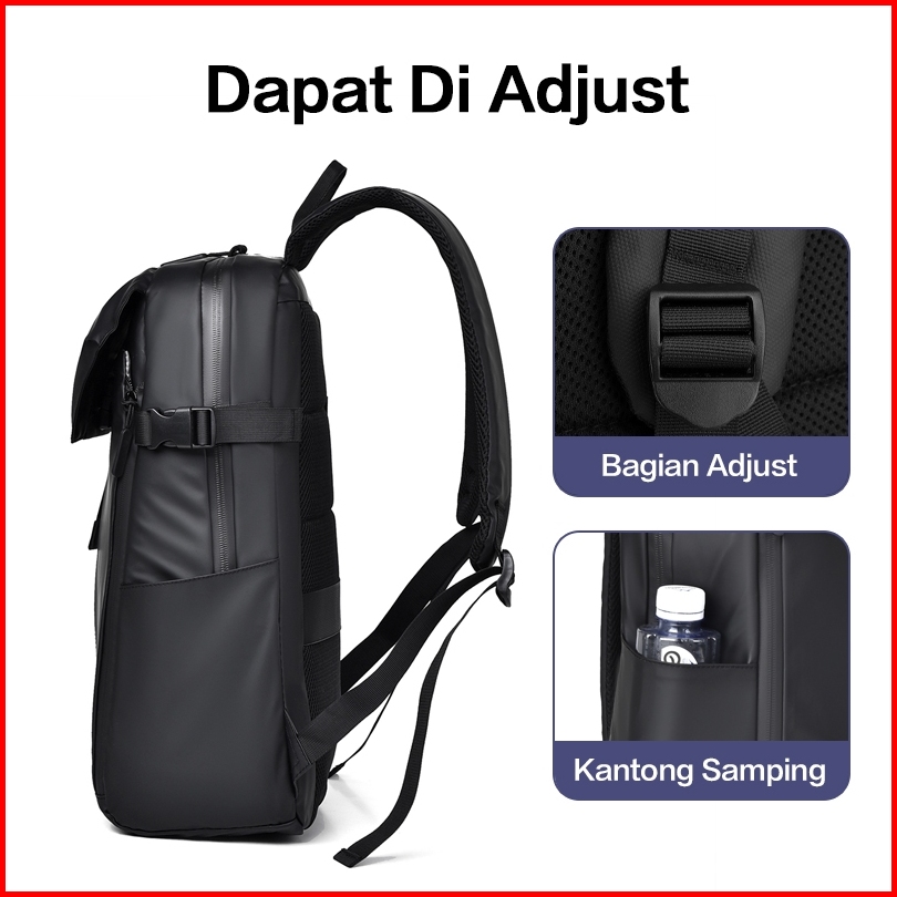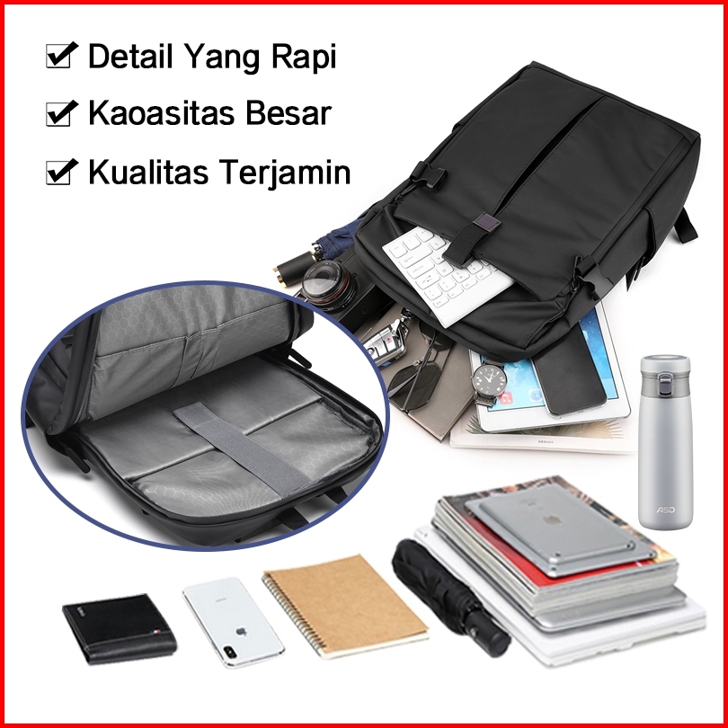 Highland Tas Ransel Backpack Pria Waterproof Fashionable Stylish Tas Punggung Sekolah Hitam Cowok Keren New Model Tr728
