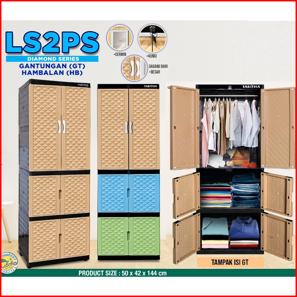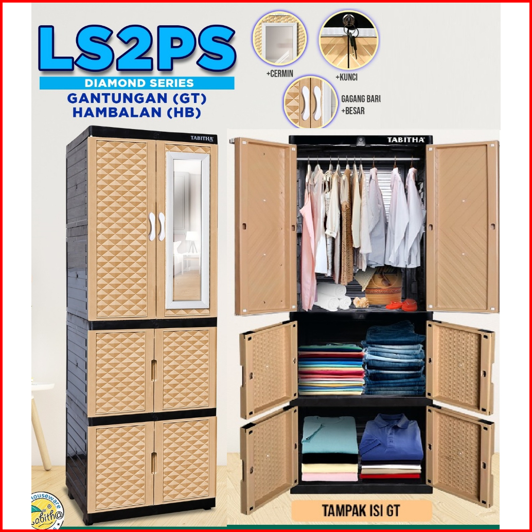 Lemari Baju Plastik Tabitha Gantung Kaca Cermin Full Kunci Murah Kokoh