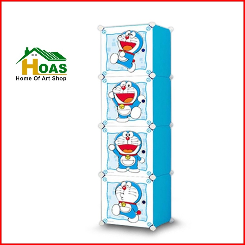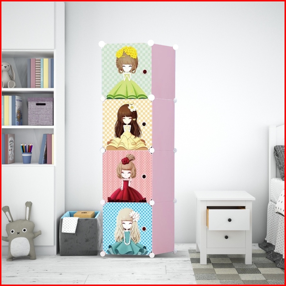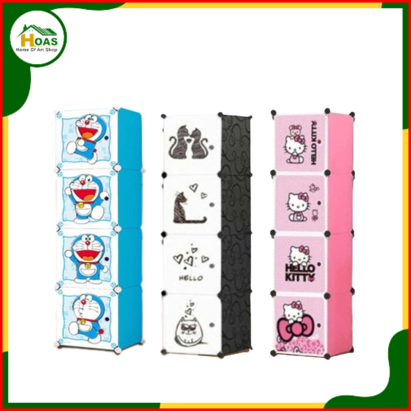 Hoas Lemari Pakaian Plastik 4 Susun Lemari Serbaguna Lemari Baju Rak Buku 4 Pintu