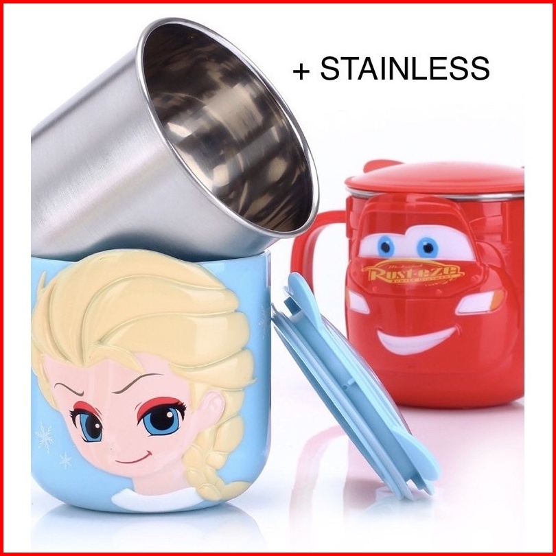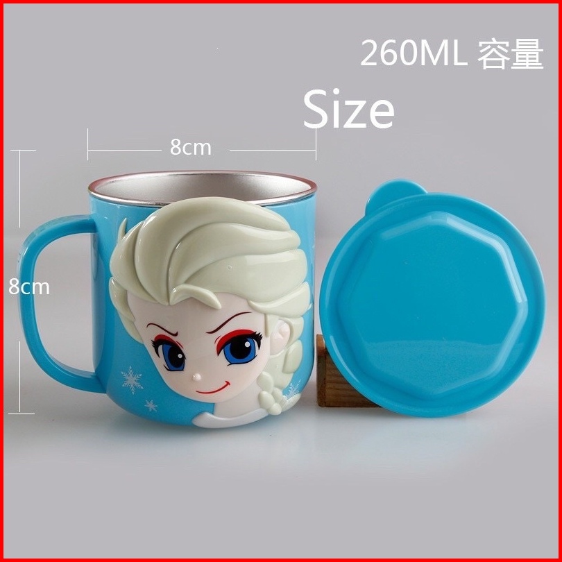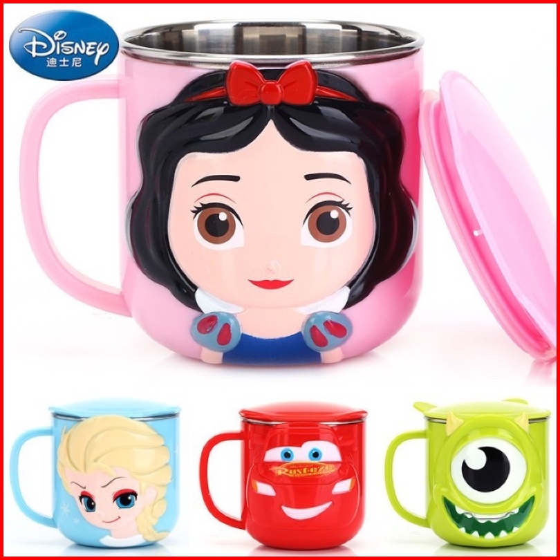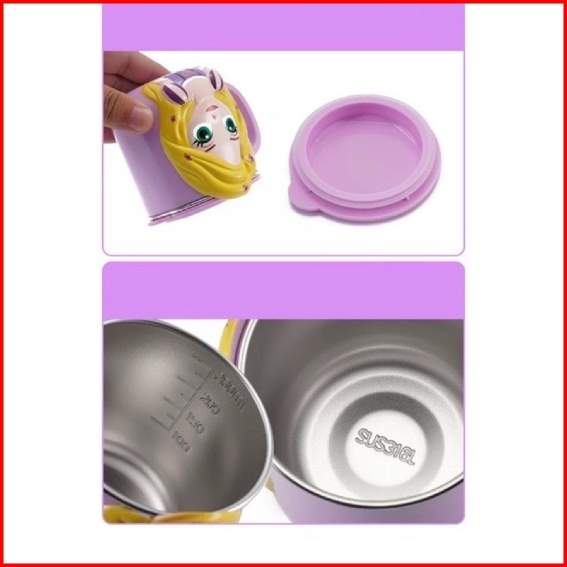 Gelas Mug Anak Disney 3d Princess Ada Tutup Stainless Steel