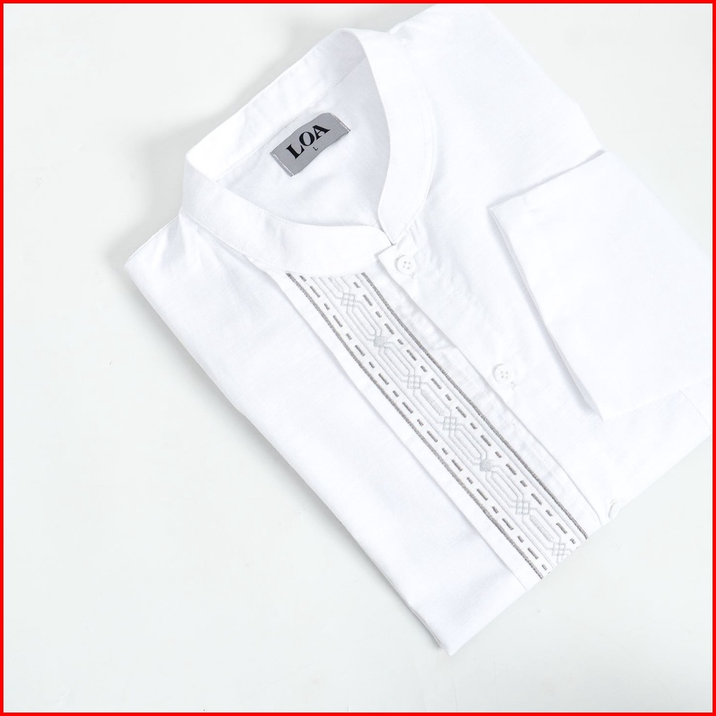 Loa Studios - Kanz Baju Koko Pria - Kanz - Kemaja Koko Bordir Lengan Panjang Pria - Putih