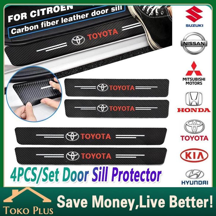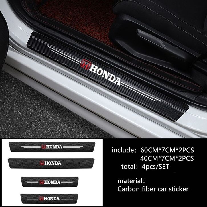 4PCS/Set Carbon 3D Door Sill Plate Guard Pelindung Pijakan Injakan Kaki Pintu Mobil Set utk Honda Mitsubishi Suzuki