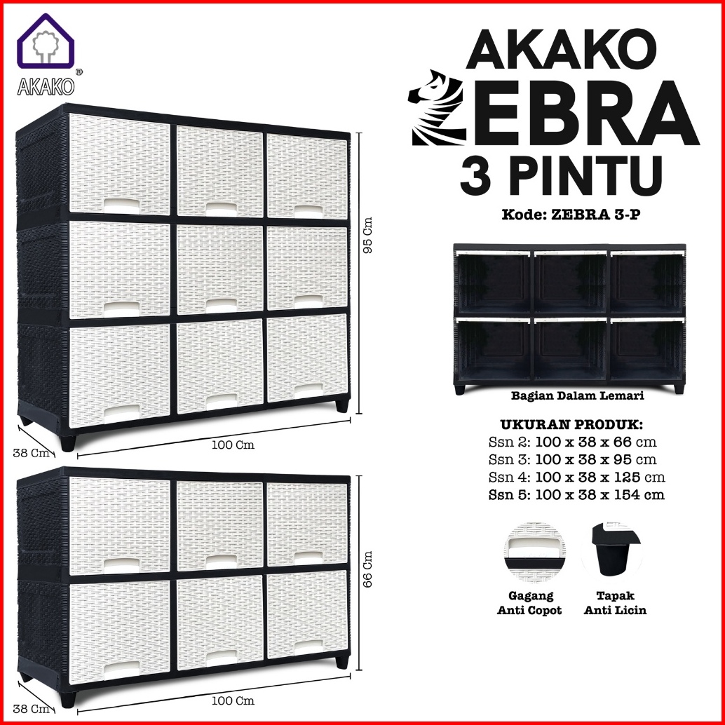 Lemari Pakaian Plastik Akako Zebra 3 Pintu 2 3 Susun Laci 6 9 Pintu Putih Rotan Murah Kuat Kokoh