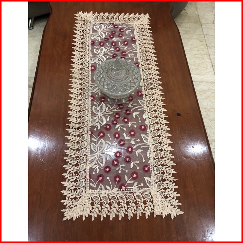 Taplak Meja Tamu Renda Brokat Organdi 40x100cm