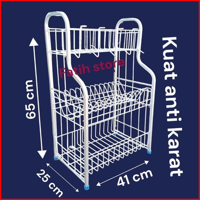 Rak Piring Rpk Susun 03 Dapur Wastafel Meja Serbaguna Minimalis Kuat-antikarat Dilengkapi Dengan Tempat Gelas