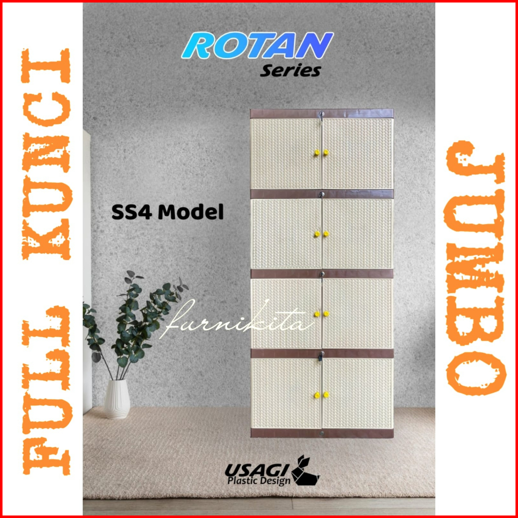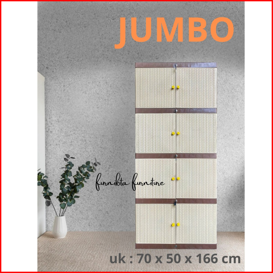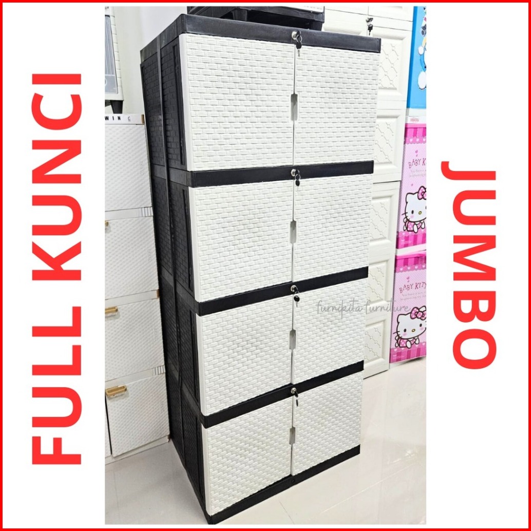 Jumbo - Lemari Plastik Serbaguna Rotan Polos Full Kunci Usagi