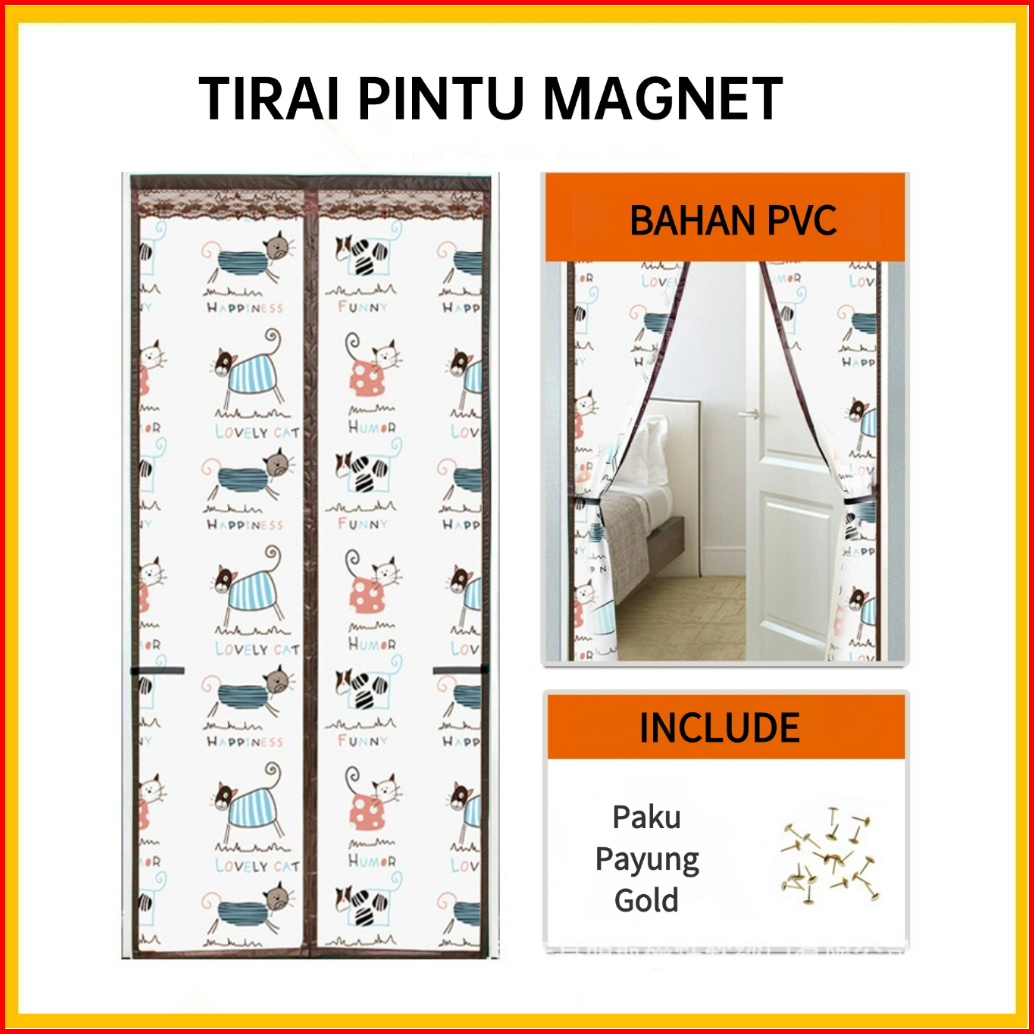 Tirai Magnet Elegan Bahan Pvc Tirai Pintu Kamar Motif Anti Nyamuk Size 90x210cm
