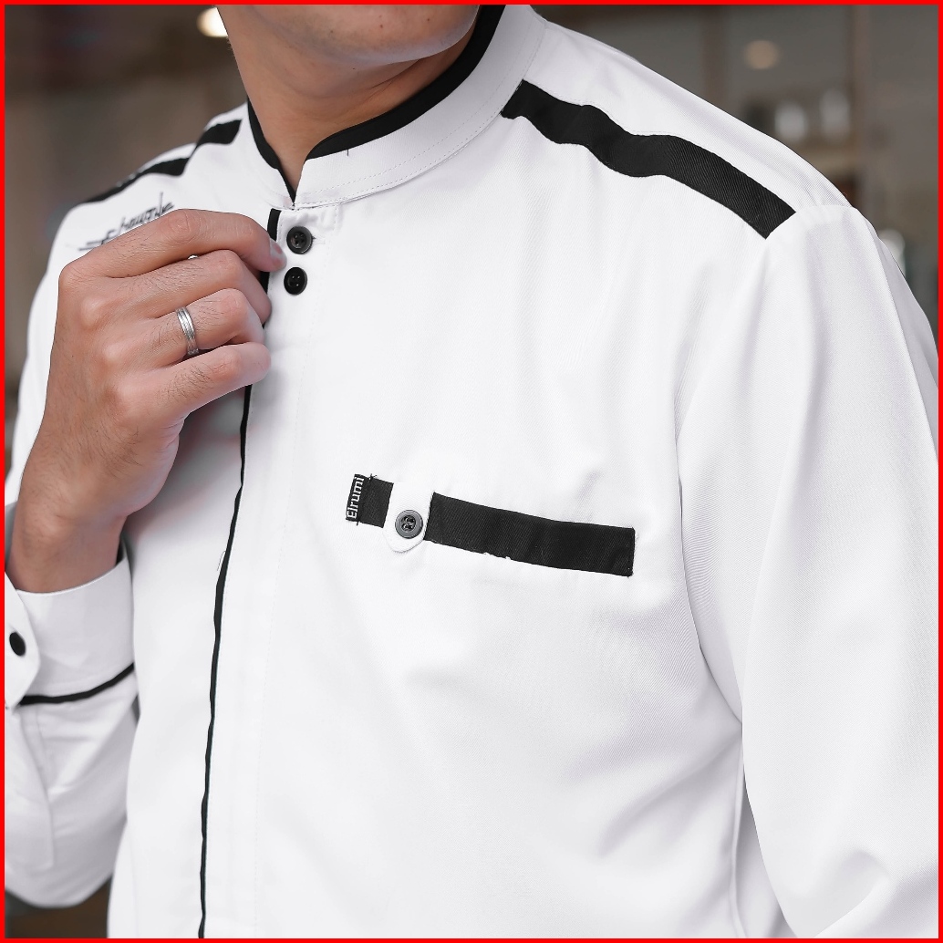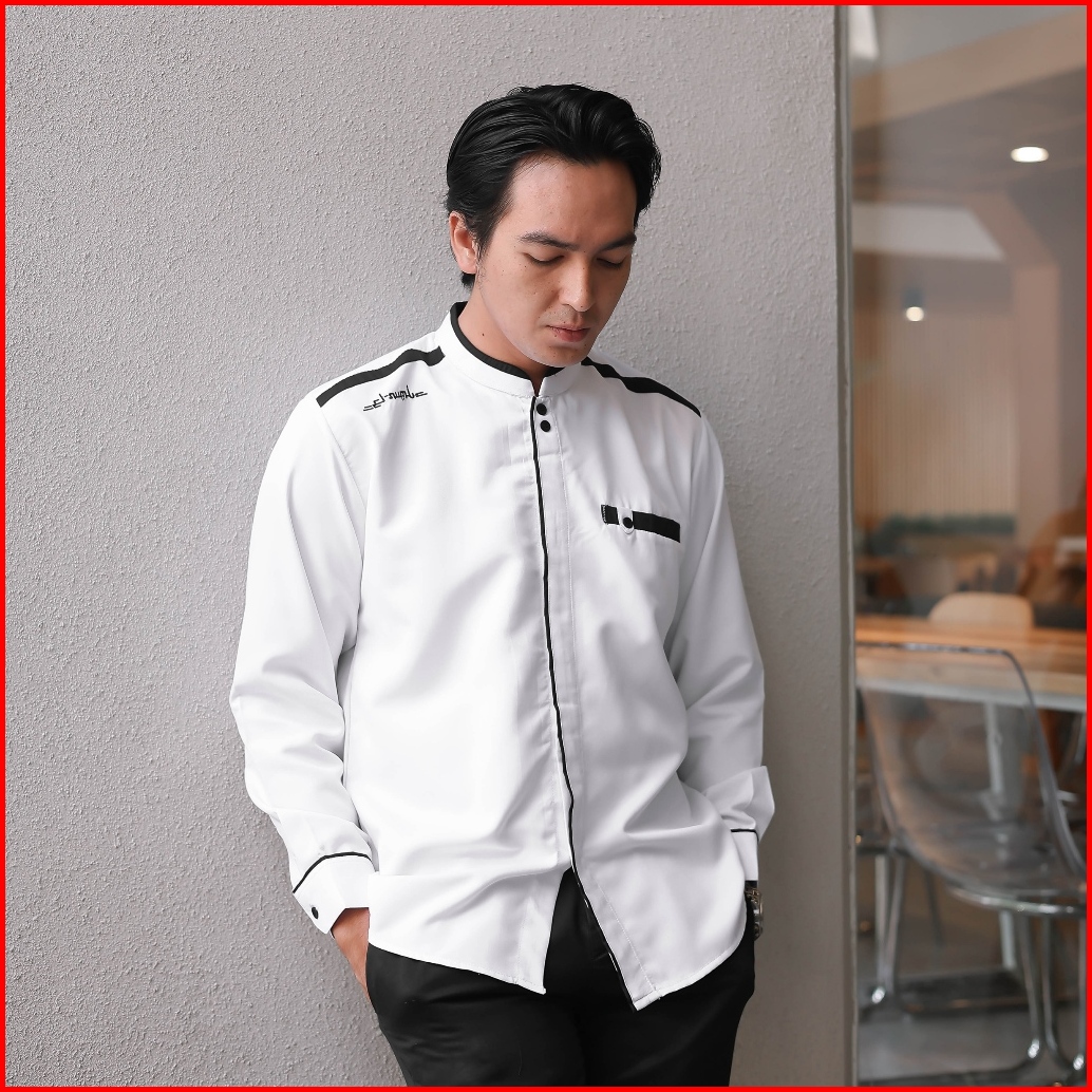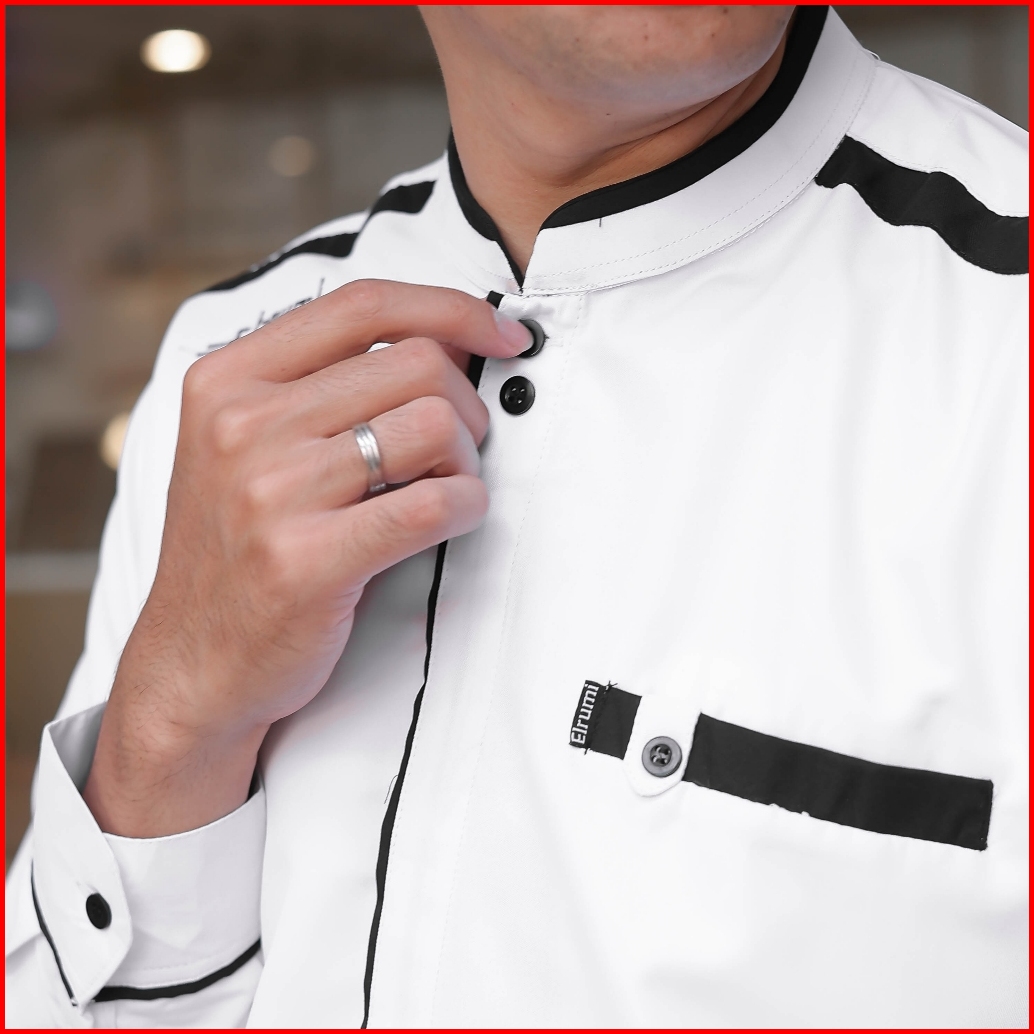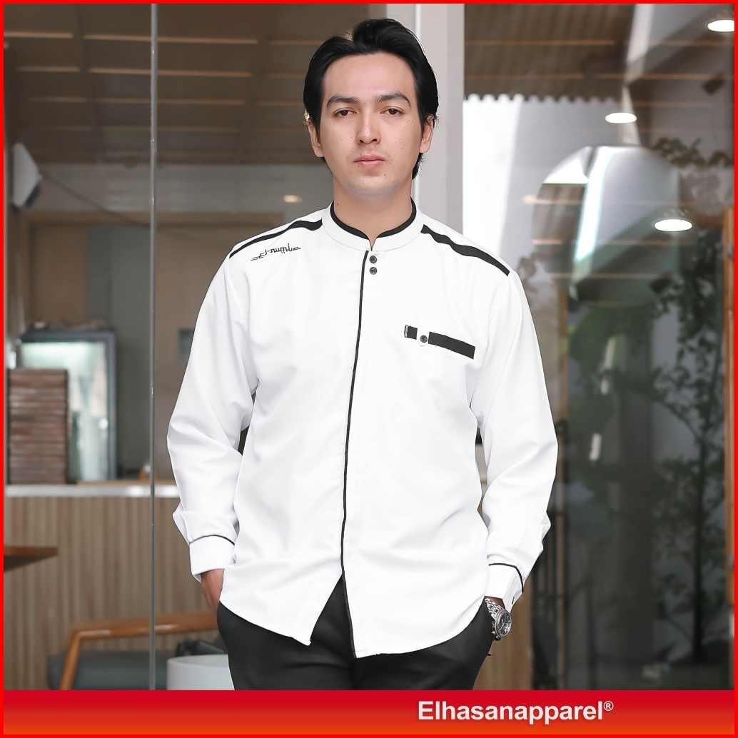 Baju Koko Pria Elrumi Lengan Panjang Motif Yisunsin Warna Putih