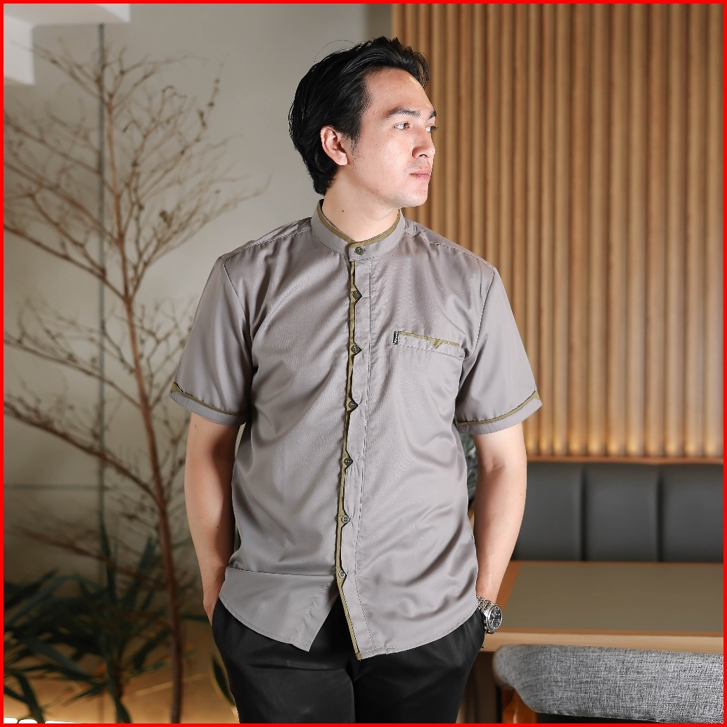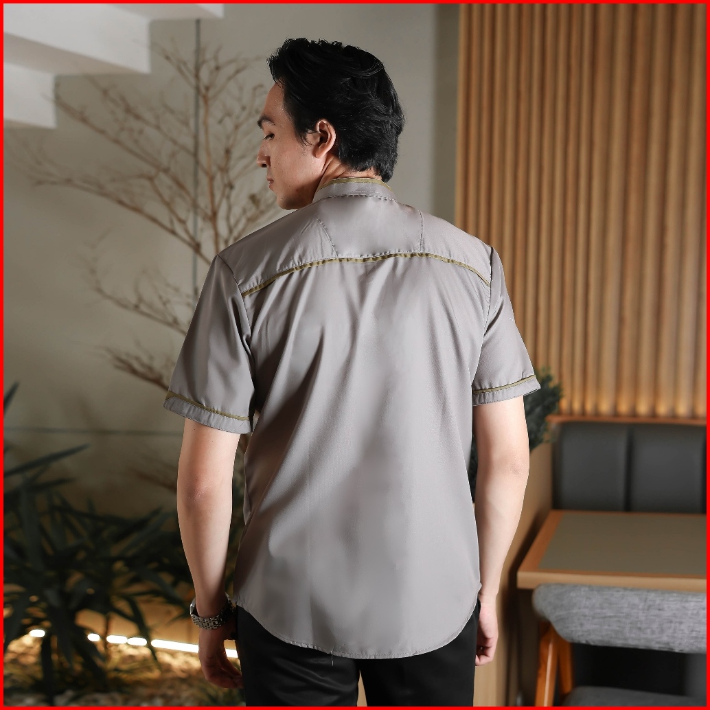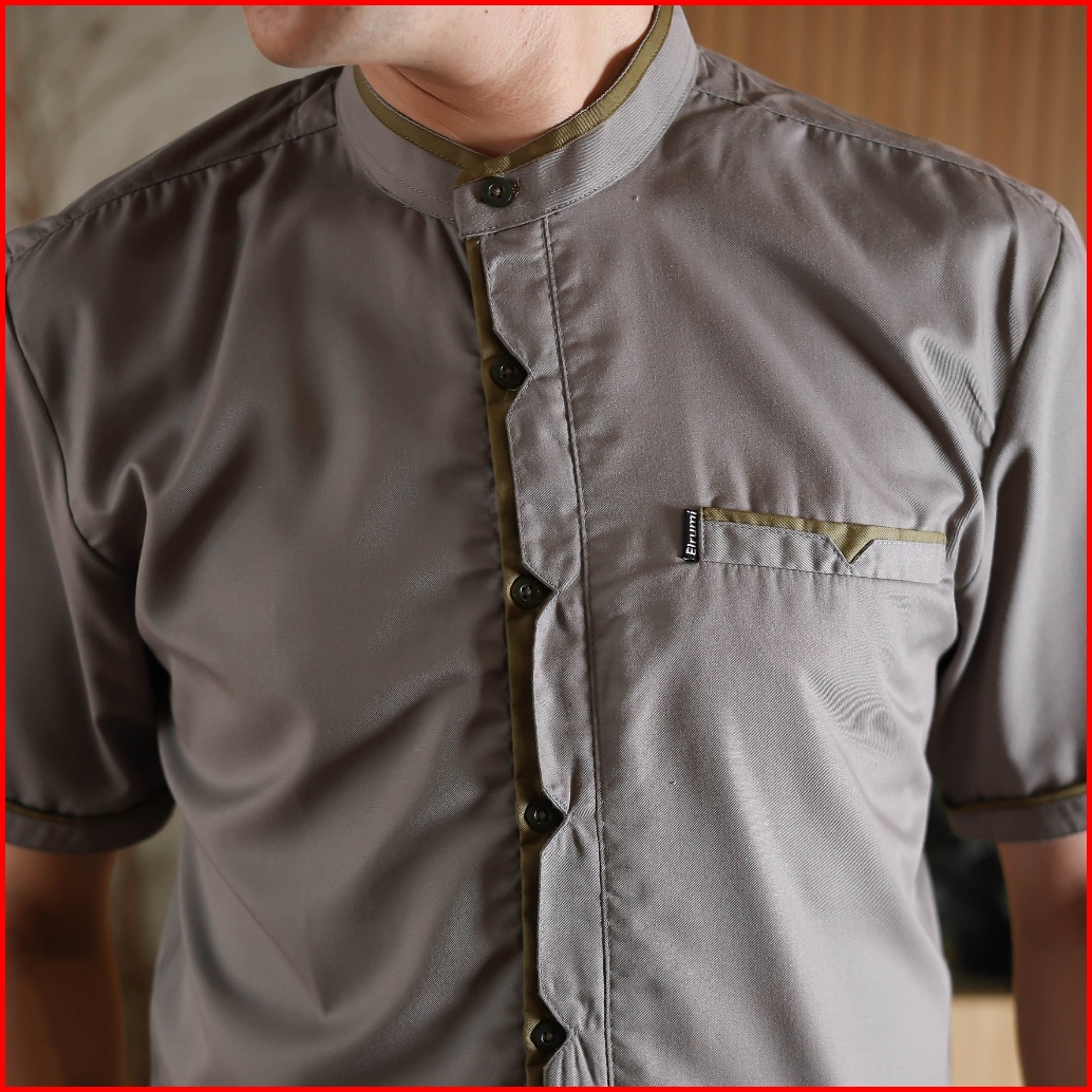 Baju Koko Pria Elrumi Lengan Pendek Motif Shaka Warna Abu