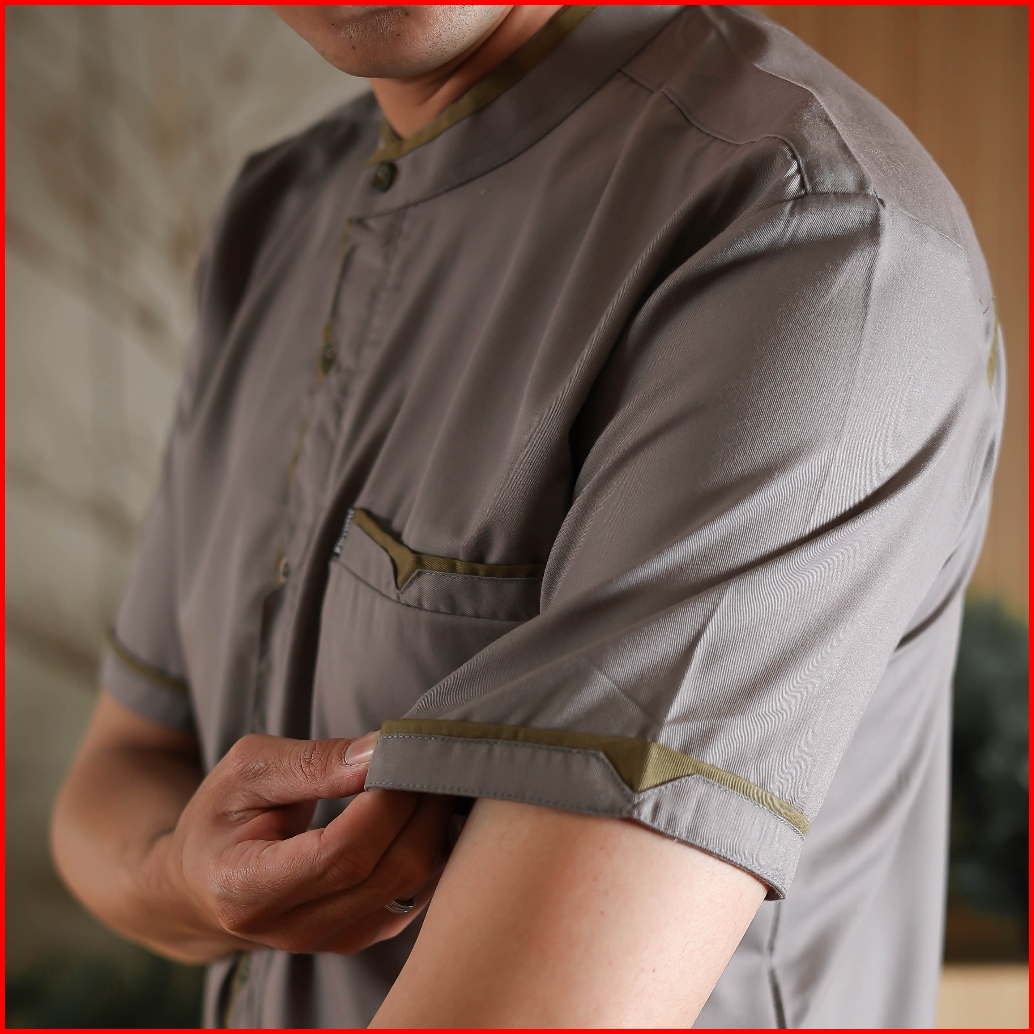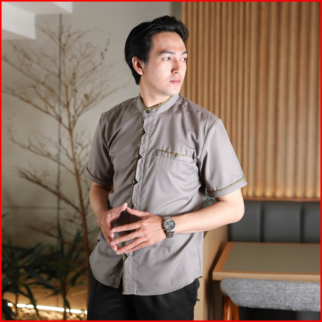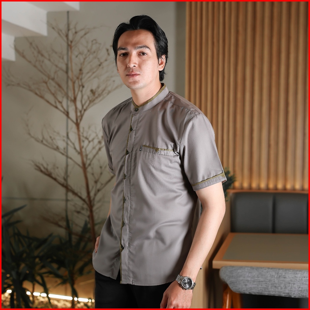 Baju Koko Pria Elrumi Lengan Pendek Motif Shaka Warna Abu